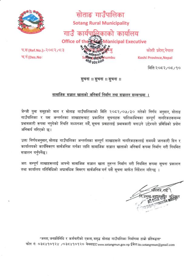 सामाजिक सञ्जाल खाताको अनिवार्य निर्माण तथा सञ्चालन सम्बन्धमा !!!