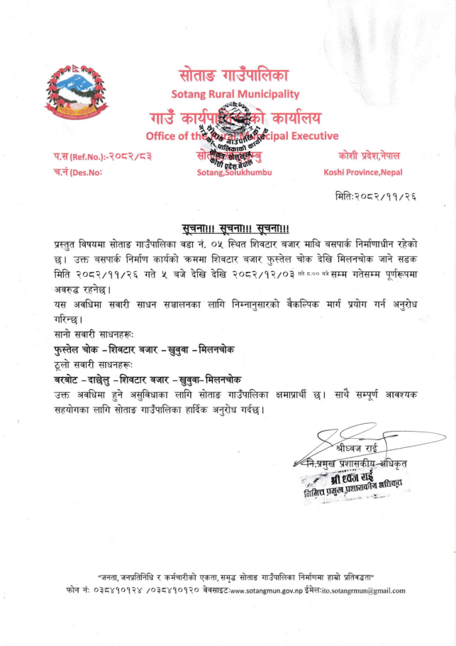 सोताङ गाउँपालिका, गाउँ कार्यपालिकाको कार्यालय